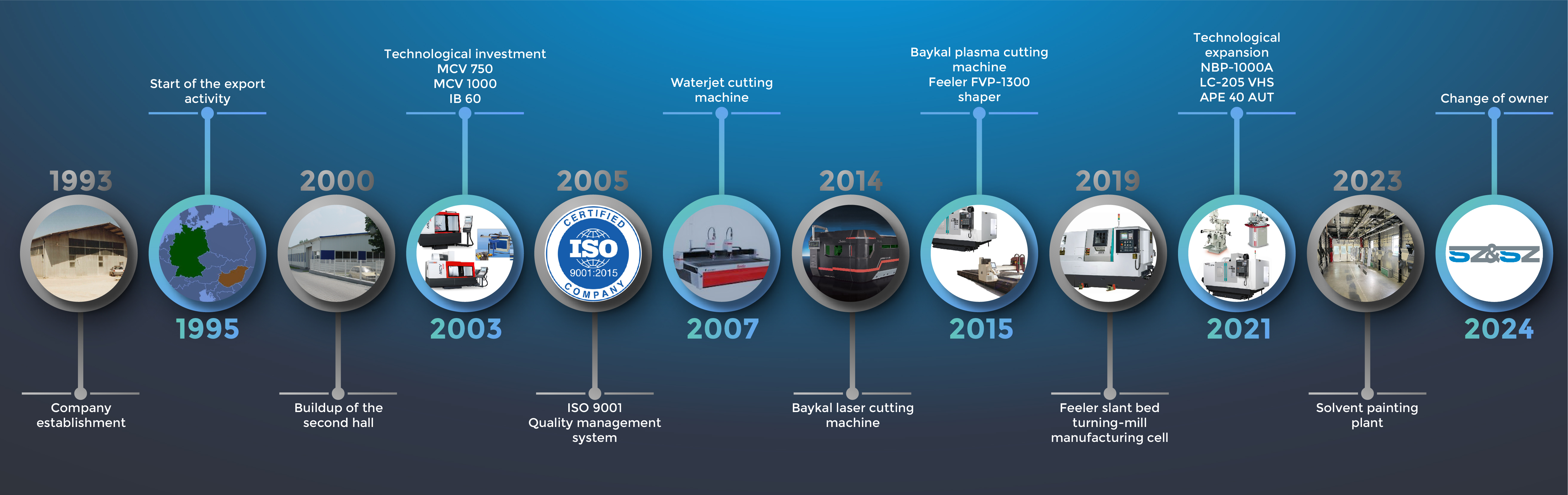 Continuous development of the company - both in terms of infrastructure and technology - made/makes it possible to simplify our processes, thus increasing our efficiency. The initial orders from the domestic market has been gradually replaced by export, which currently makes up almost 95% of our total turnover. The increased turnover, the continuously expanding product range and traceability is now supported by an ERP system, which was developed in several steps in line with the needs of the company. There were many milestones and investments in the life of the company since its start, the most significant of which are:
